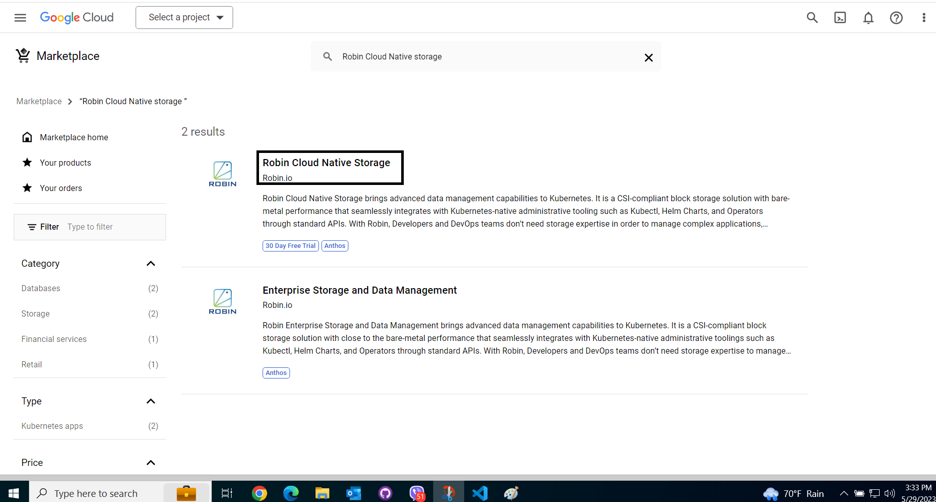 Lastly in order to ensure the Robin storage class is available and can be used for provisioning, issue the following command.