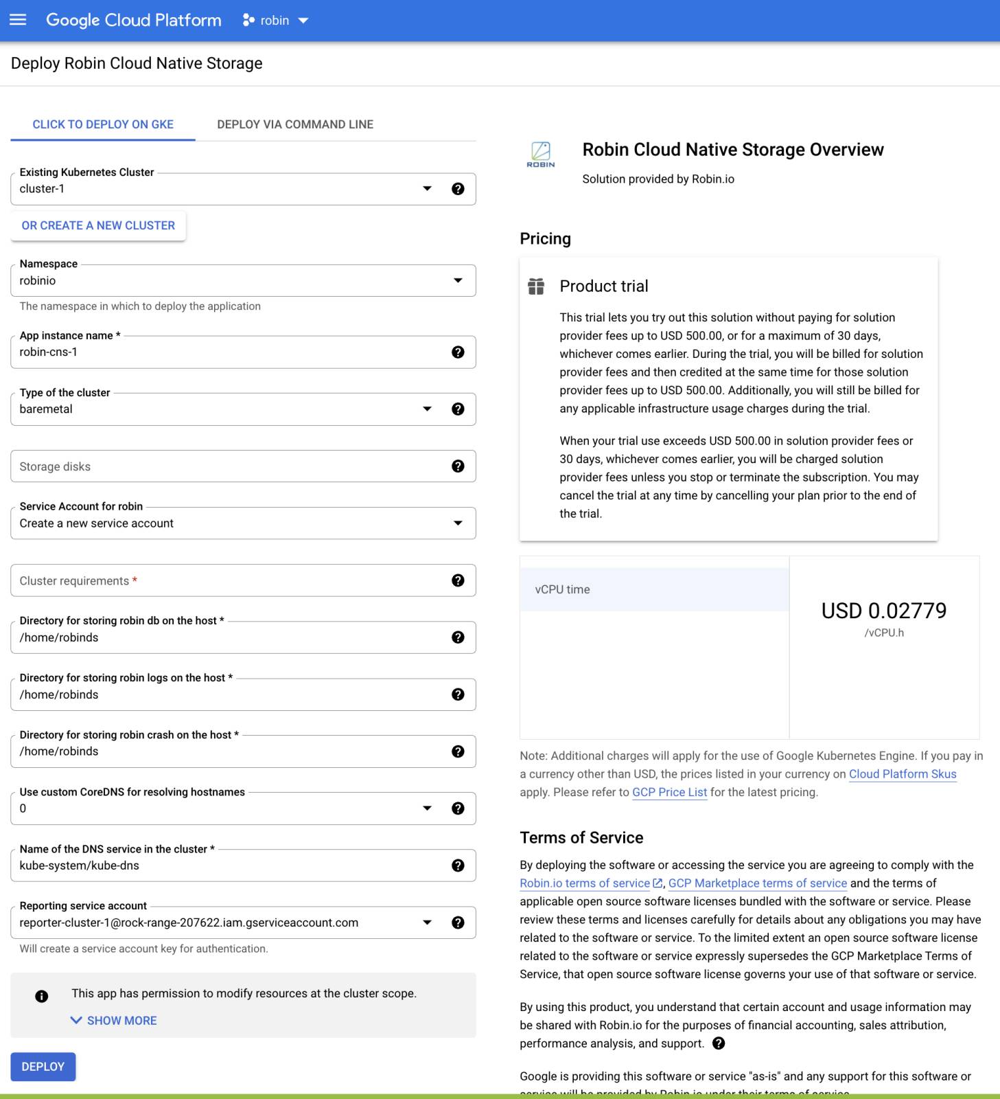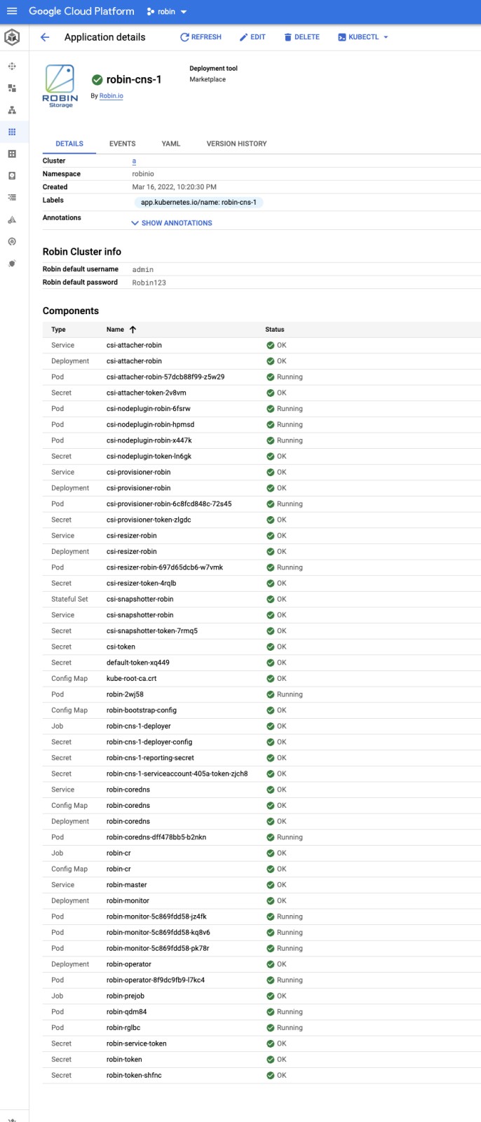 $ kubectl delete robincluster ${APP_INSTANCE_NAME}
